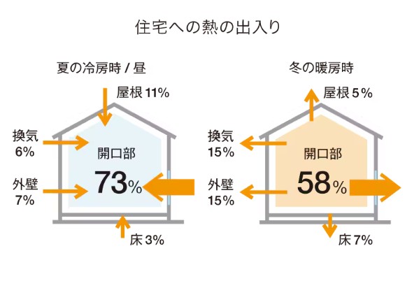 実は開口部(窓)が住宅の熱が出入りする一番の場所です。