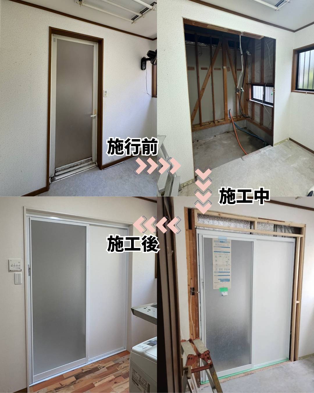 浴室のドアを開き戸から引き戸へ