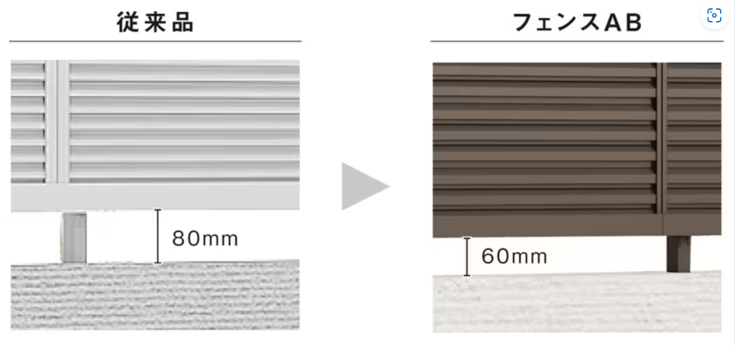 フェンスABは、フェンス下空き寸法が