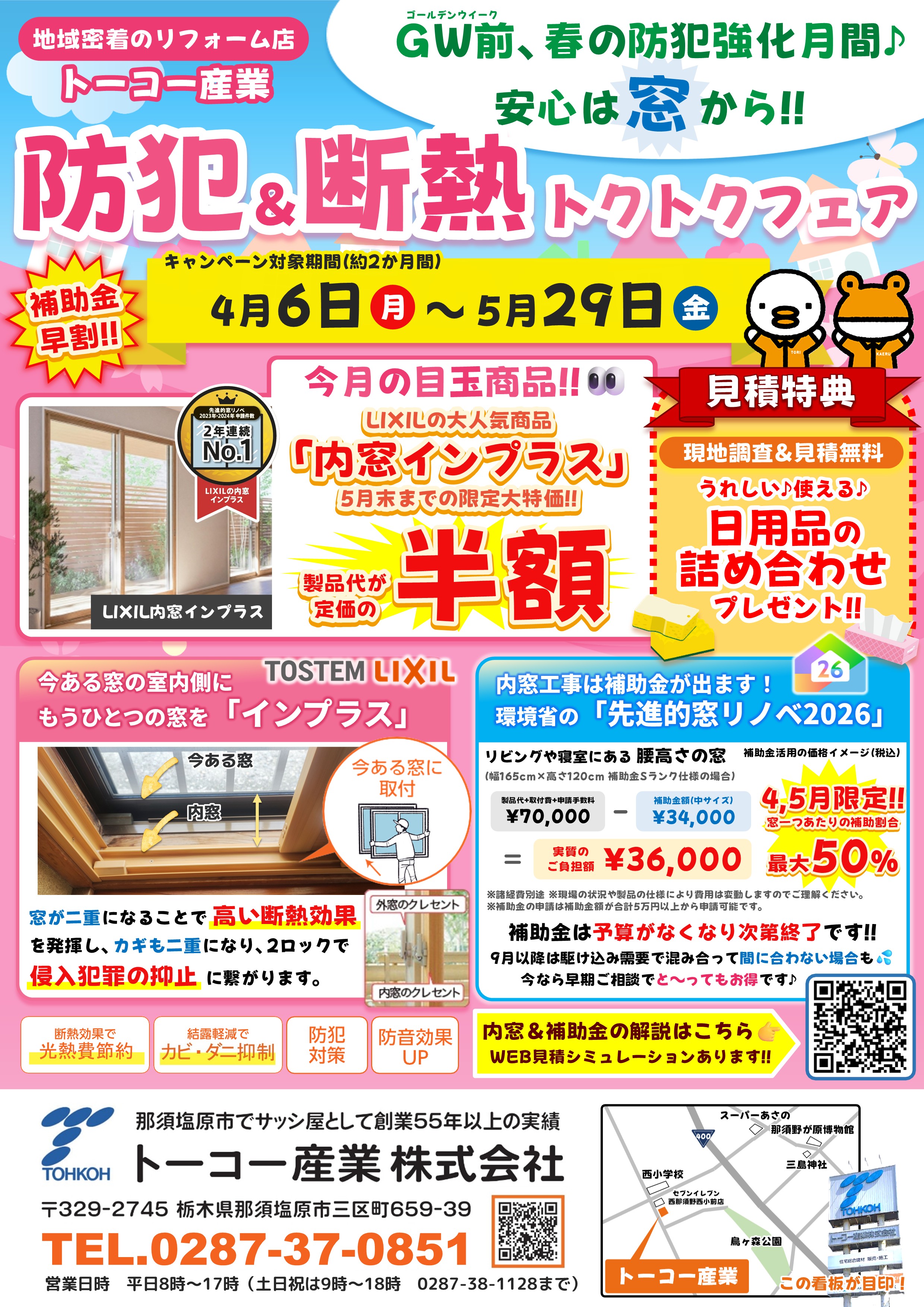 🌸断熱&防犯トクトクフェア🌸開催中【5月29日まで※約2か月】|トーコー産業|那須塩原市