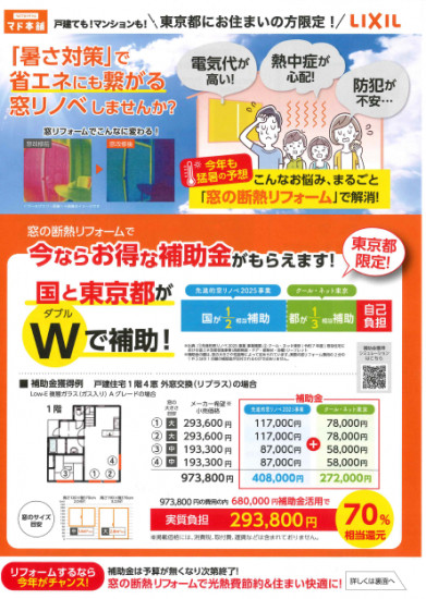 - 住宅省エネ2025キャンペーン兼用で今なら東京はWでお得です!!