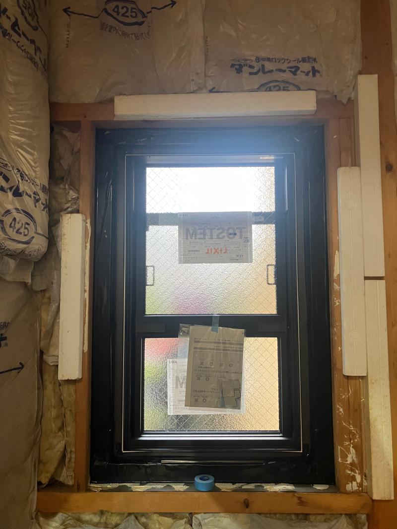 施工前はルーバー窓でしたが、新規のサッシは面格子付きの上げ下げ窓になっているので、