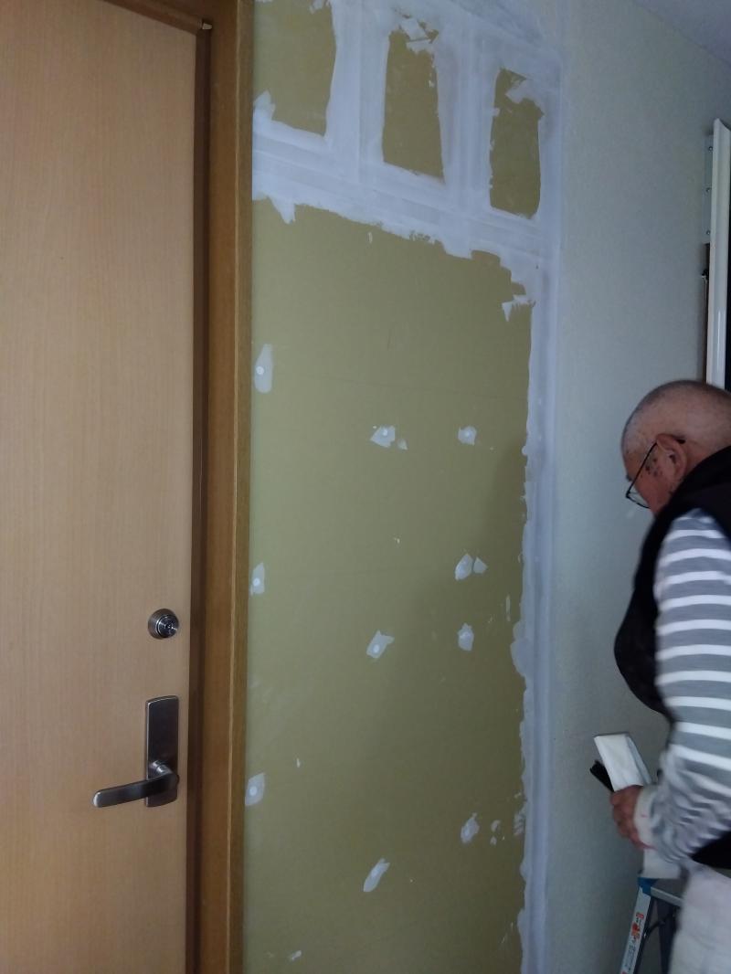 弊社社員で、壁補修を行い、