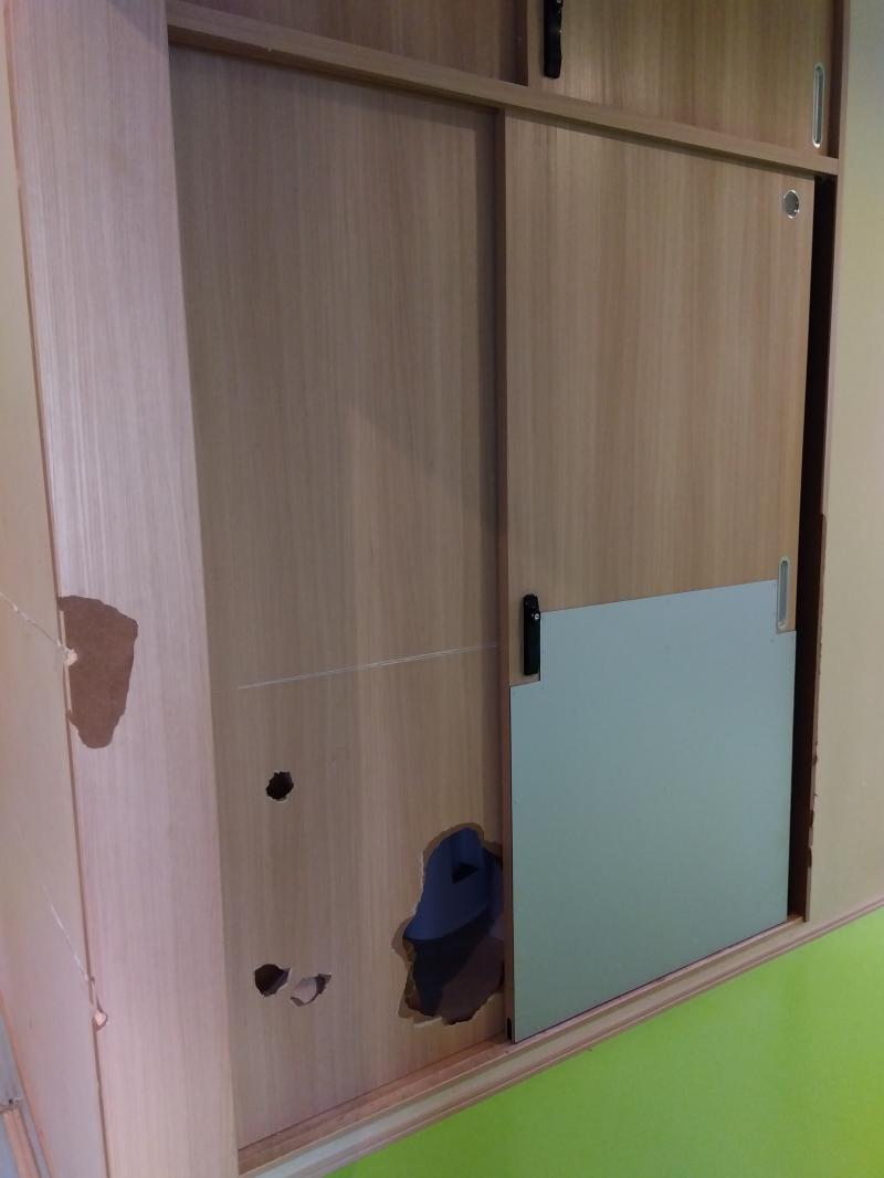 これは室内の押入です。表面材が薄いので簡単に穴が空いてしまいます。