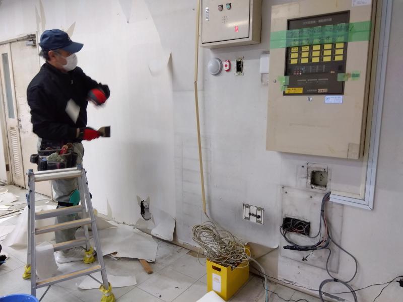剥がした状況です。外せない機器はそのままでクロスを貼ります。