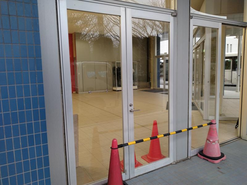 八王子市内にございます、弊社お客様の 私立中学・高等学校 式典などを行う記念館の出入り口のドアのガラスが割れてしまいました。