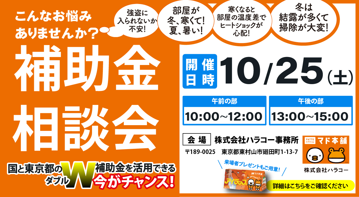 暮らしのお悩みを補助金を利用して解決しよう!補助金相談会開催!!