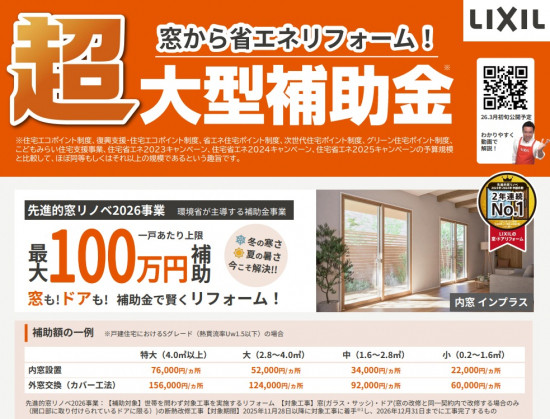 - 昨日2026年の先進的窓リノベ詳細発表されました!窓交換・内窓工事の補助金単価表も公開され、期待値が高まっています!今回はLIXILのインプラスとリプラスで作成しています。