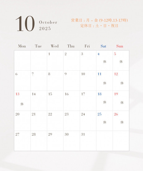 土曜日 日曜日 祝日 GW 夏季休暇 年末年始