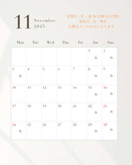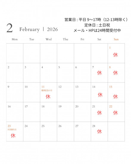 9:00~17:00 (定休日・営業時間外はメールにてお問合わせください)