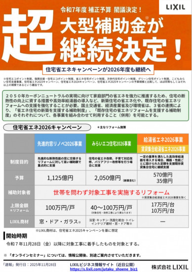 - ※速報※2026年窓リノベ補助金閣議決定!!!