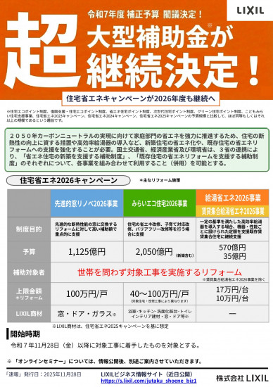 - 2026年 先進的窓リノベについて