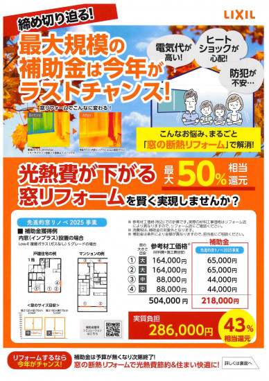 2025年10月27日 - 締切間近!!窓リフォームで補助金が使えます😎🛠️