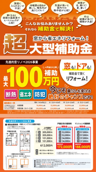 - 大好評の窓リフォーム超大型補助金が今年も継続です!