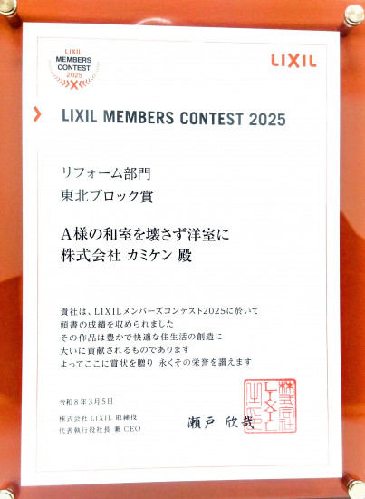- LIXILメンバーズコンテスト リフォーム部門で東北ブロック賞を頂きました