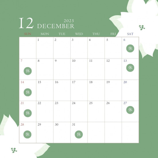 - 12月営業日カレンダー