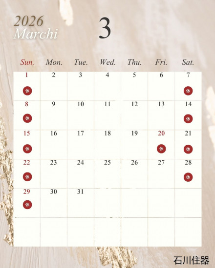 - 3月営業日カレンダー