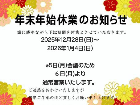 - 年末年始休業のお知らせ